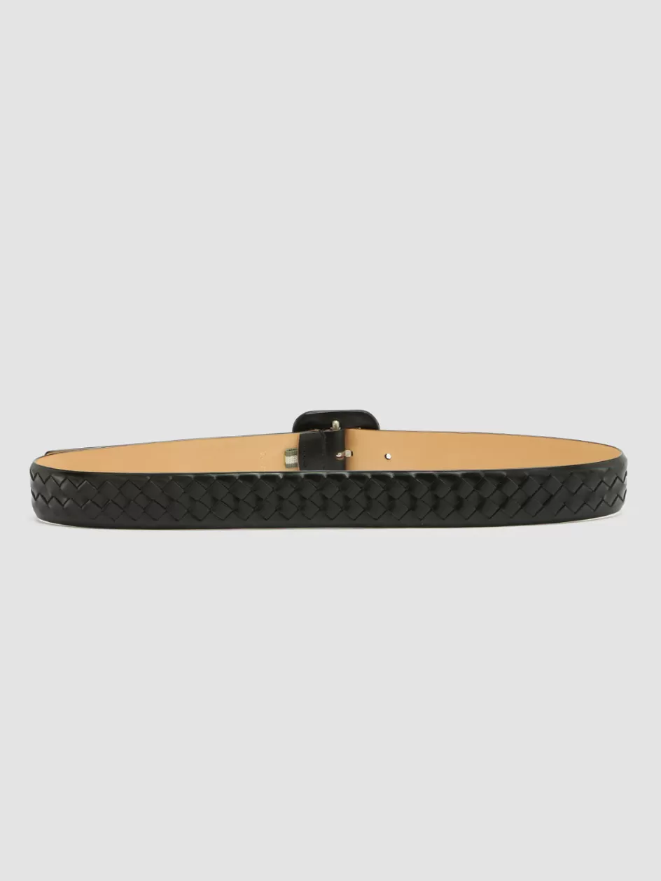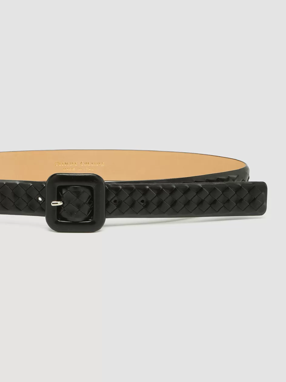 A refined and versatile accessory, our OC Strip belt is expertly handcrafted from black woven leather and is marked by the square buckle covered in smooth tone-on-tone leather. It features our gold-tone lettering logo embossed on the inside.