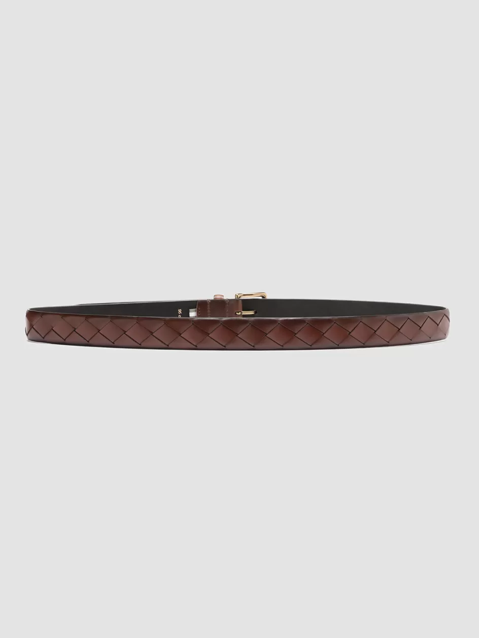 Distinguished by a refined design in woven leather our OC Strip belt is expertly handcrafted from fine airbrushed leather in shades of light brown. It has a classic square buckle in gold-tone metal logo lettering printed on the inside and our signature grosgrain loop tab.