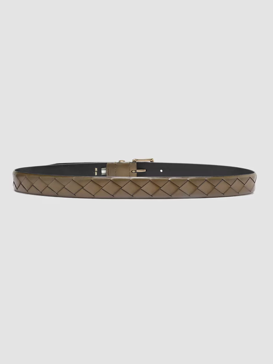 Distinguished by a refined design in woven leather our OC Strip belt is expertly handcrafted from fine airbrushed leather in shades of green. It has a classic square buckle in gold-tone metal logo lettering printed on the inside and our signature grosgrain loop tab.