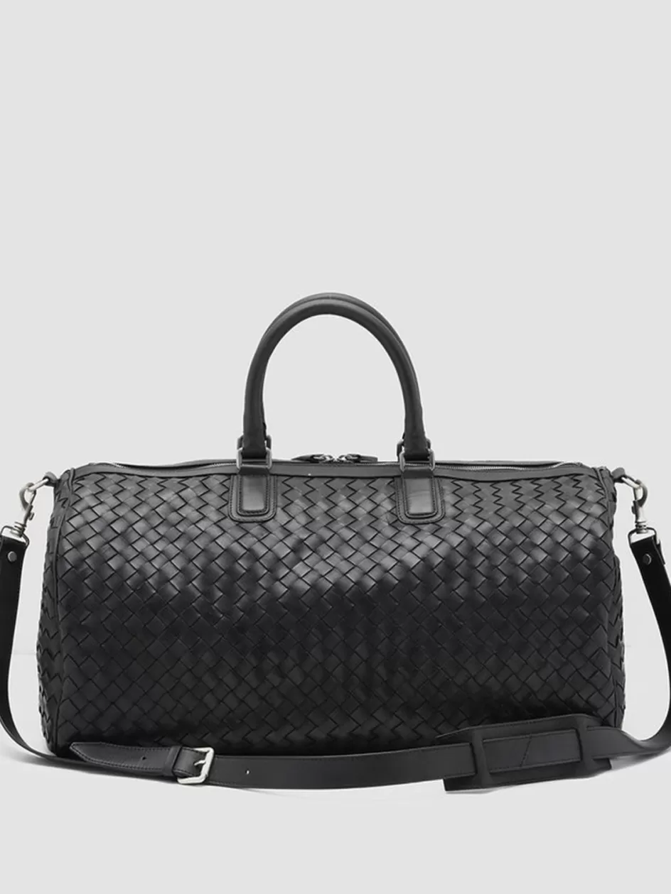 Our hand-woven leather Armor weekender features two top handles and an adjustable shoulder strap for easy carrying. The two-way zip in silver-tone metal that opens to reveal a spacious main compartment and the vertical front zip pocket make it the perfect bag for weekend getaways.