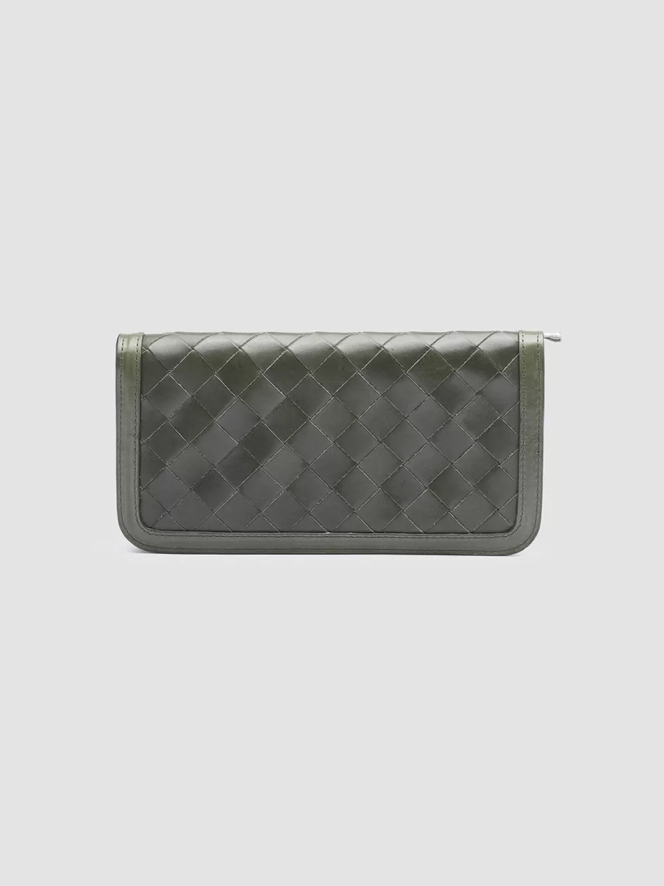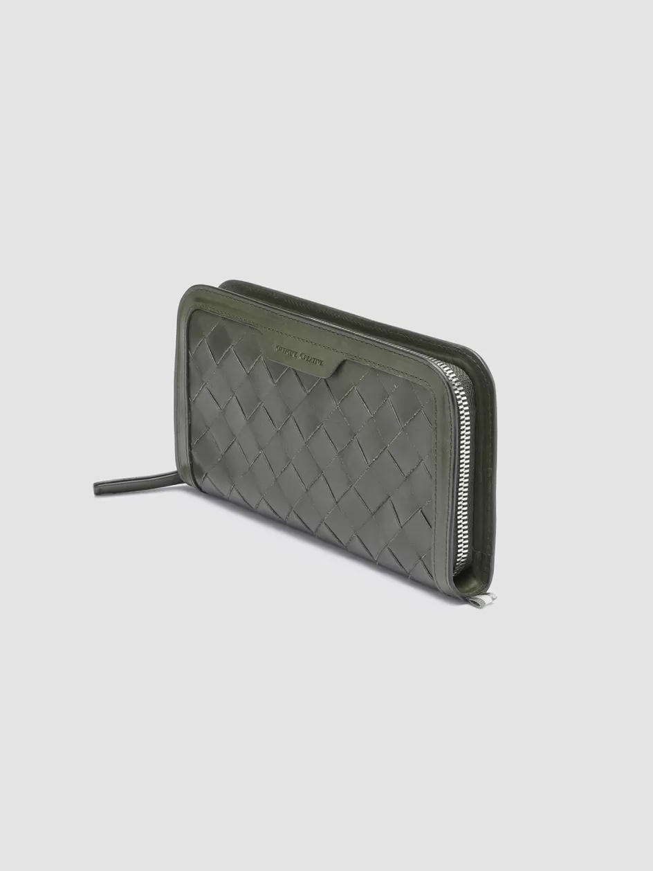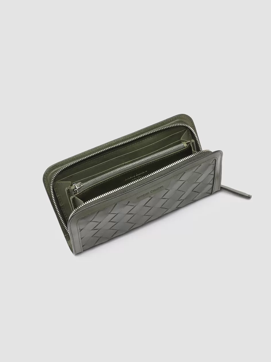 Elegance and practicality come together to perfection in our Bergé wallet in fine coffee-tone woven leather. It is expertly handcrafted by our artisans and reveals smooth tone-on-tone leather edges leather tab with embossed lettering logo at front zip around fastening two internal compartments with central zipped pocket card slots silver-tone metal hardware and iconic grosgrain side loop tab.