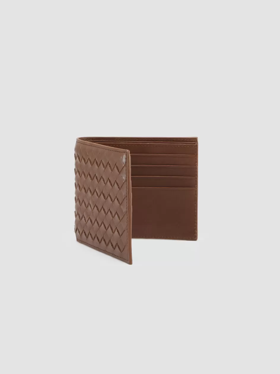 Our refined handcrafted Boudin brown leather bifold wallet is distinguished by a finely woven motif on the outside, while inside it reveals eight card slots, bill compartments and embossed gold-tone lettering logo.
