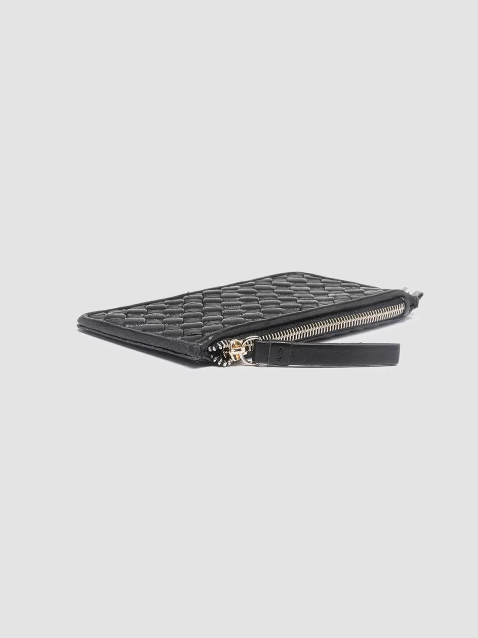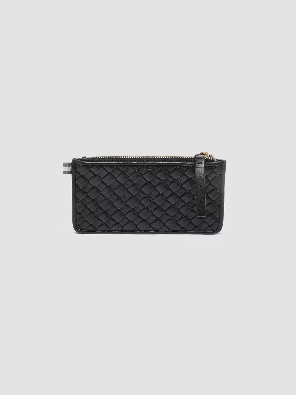 Made entirely by hand by our skilled craftsmen our Juliet card holder stands out thanks to its woven design in fine black leather. It features a gold-tone metal zip-fastened compartment six card slots logo lettering printed at front and our signature grosgrain loop tab at the side.
