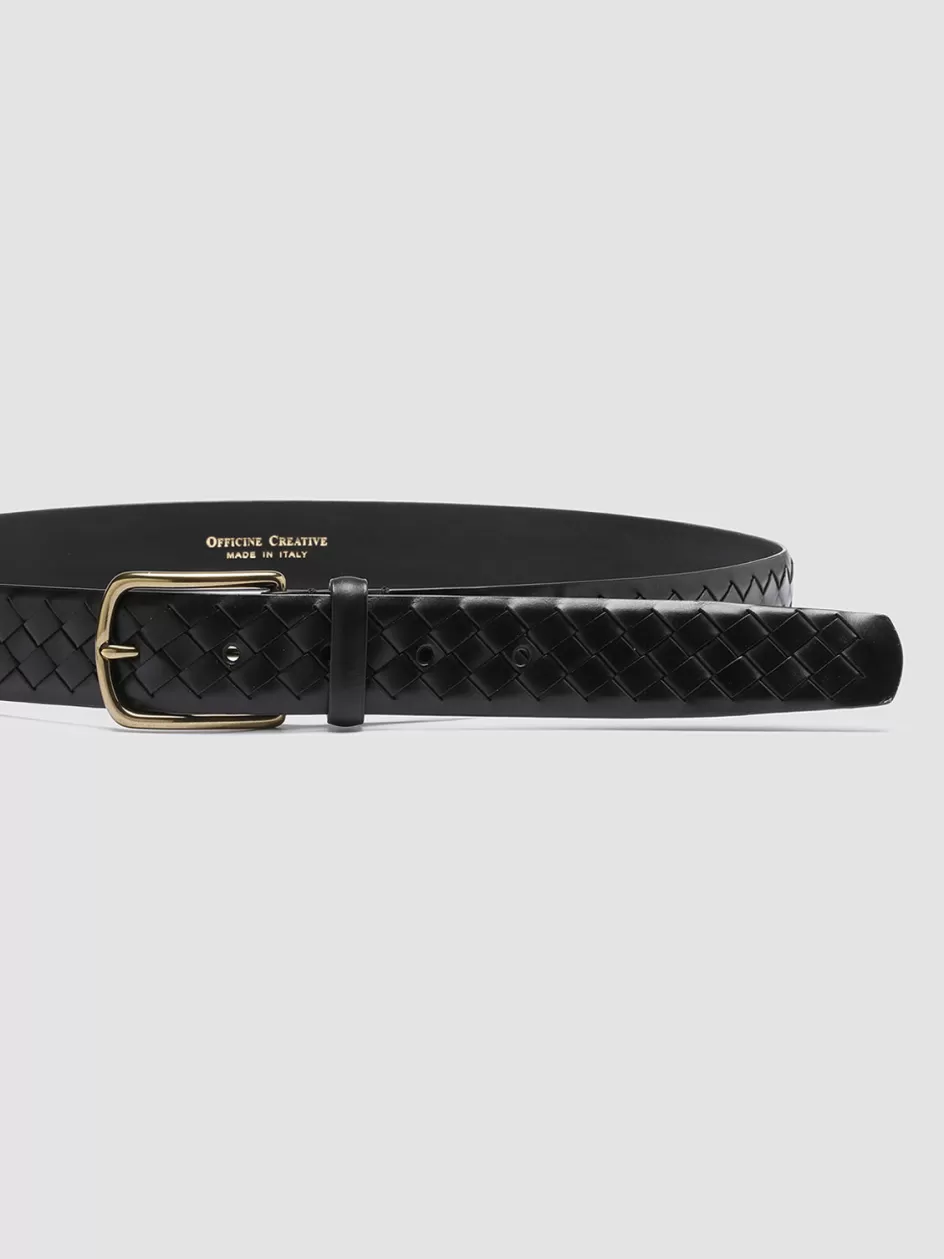 Our refined OC Strip handcrafted belt in fine woven and airbrushed leather in shades of black is perfect to combine with your most elegant outfits. It features a classic square buckle in gold-tone metal logo lettering printed on the inside and our signature grosgrain loop tab.
