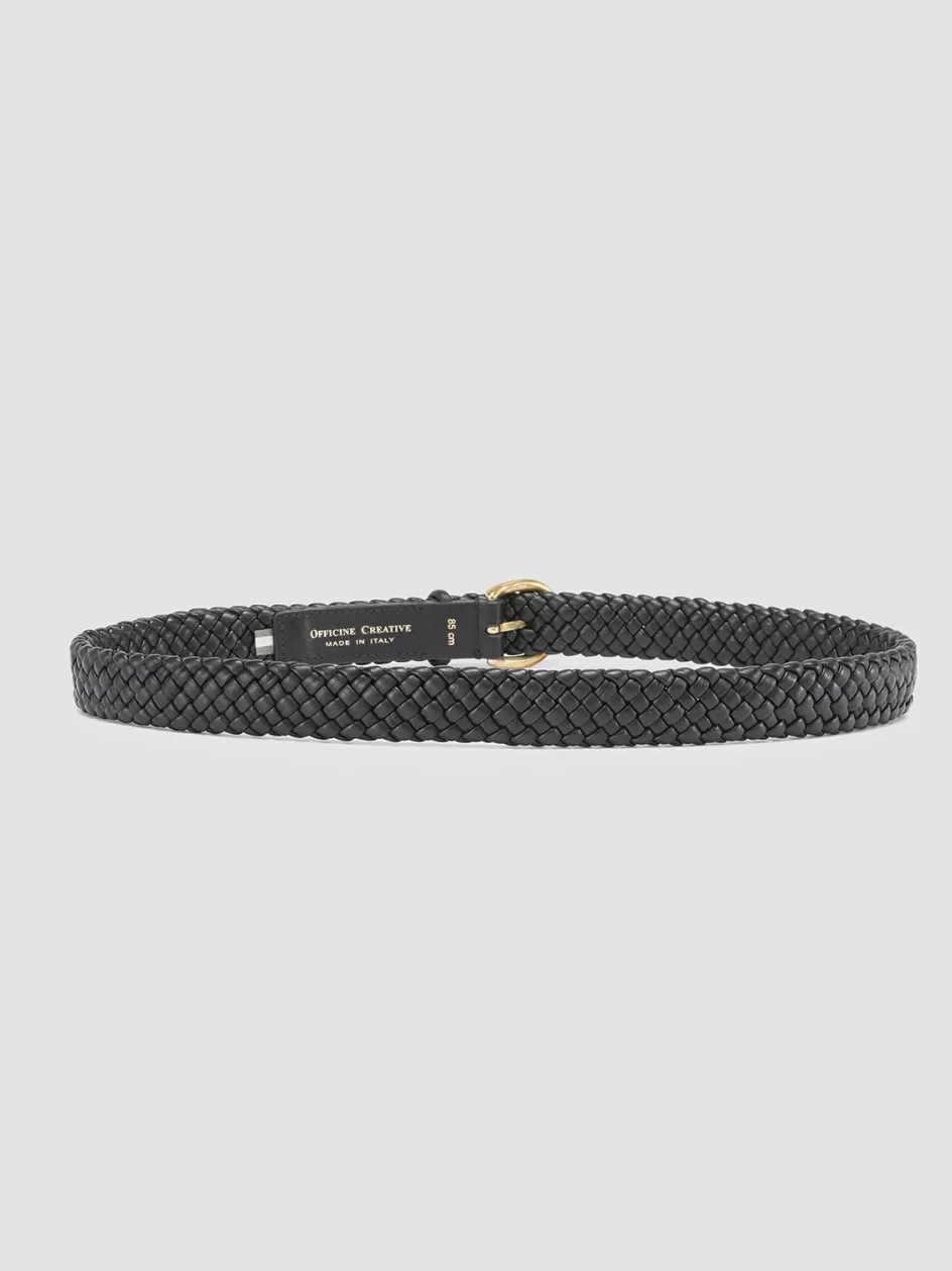 Comes in a refined black shade our exclusive OC Class slim belt is handcrafted by our skilled artisans from premium woven leather. It shows a rounded gold-tone metal buckle logo lettering printed on the inside and signature grosgrain loop tab.