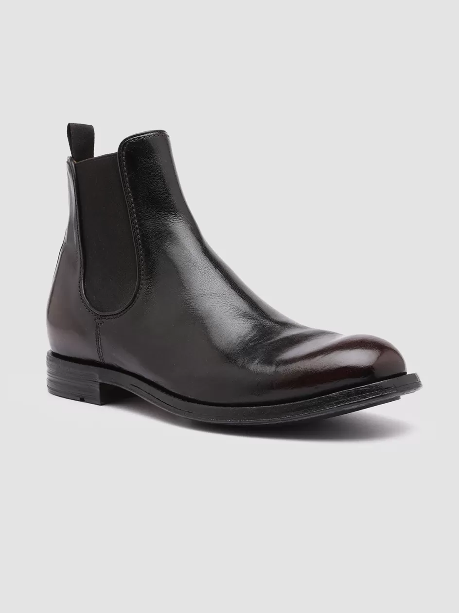 Expertly handcrafted from fine smooth leather our Balance Chelsea boots stand out thanks to the shaded dark brown and black upper. Their comfortable silhouette features a rounded almond toe classic stretch side inserts for a perfect fit heel grosgrain pull tab and a leather sole with a rubber outsole.