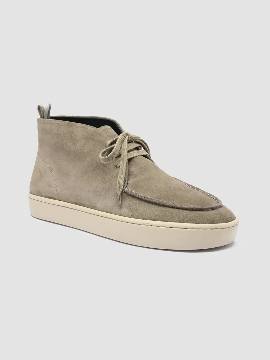 Great for a modern casual style our Bug chukka boots are handcrafted from supple military green suede and reveal a rounded almond toe highlighted by double stitching cotton laces and grosgrain heel loop-tab. The comfortable natural rubber sole adds a sporty twist.