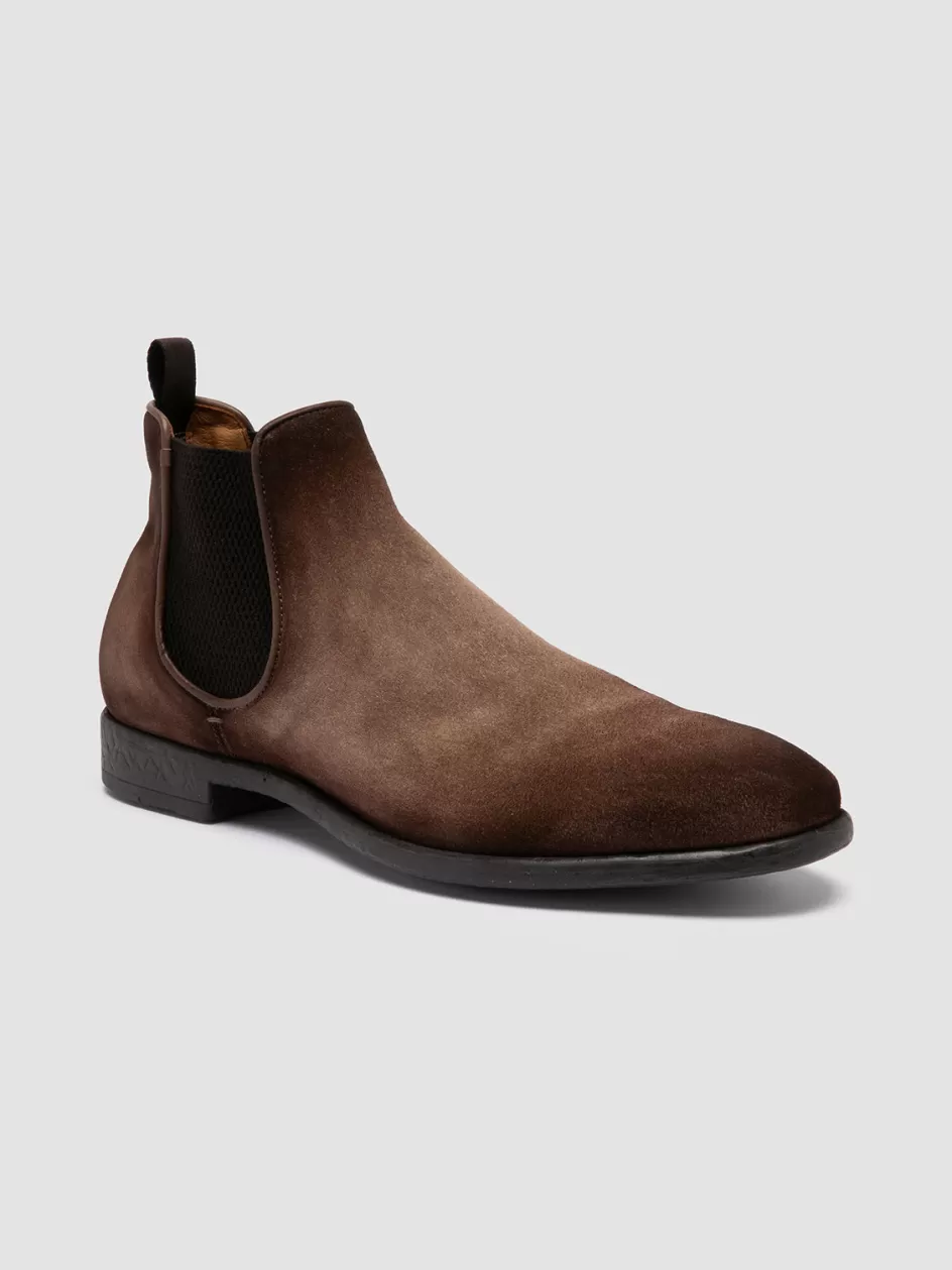 Our Ceton Chelsea boots feature a decidedly comfortable and versatile design. Handcrafted by our amazing craftsmen they feature an airbrushed suede upper in dark brown shades textured fabric side inserts a grosgrain heel pull tab and a durable caoutchouc sole.