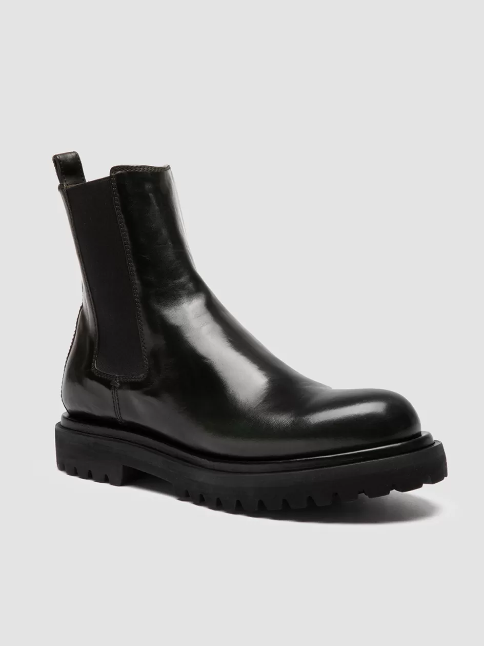 The Eventual DD 103 green Chelsea boots bring a reinterpretation of ’90s fashion into the modern wardrobe. Masterfully handmade in Italy with a deep dye technique, the slim silhouette is set on an ultra-light EVA slug sole.