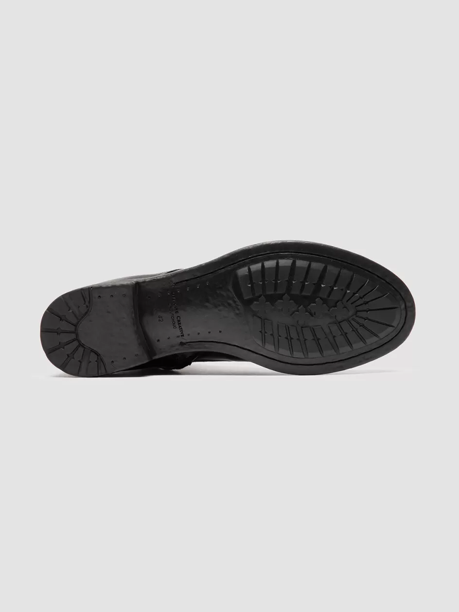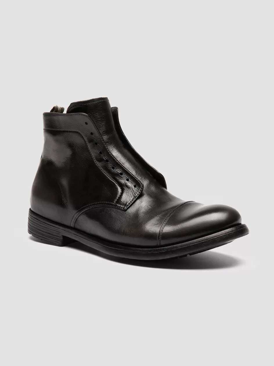 Handcrafted in Italy, the Hive 005 boots showcase a streamlined design in premium black leather. A distinct feature is the absence of laces, for a sleek look complemented by a silver-tone side zip and a durable rubber sole.