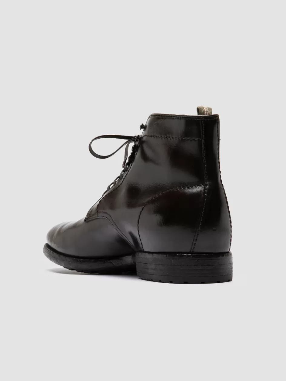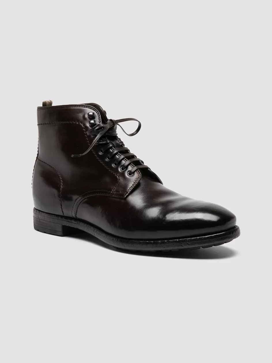 Lace-up Ankle Boots in dark brown leather with leather lining and flexible rubber sole.