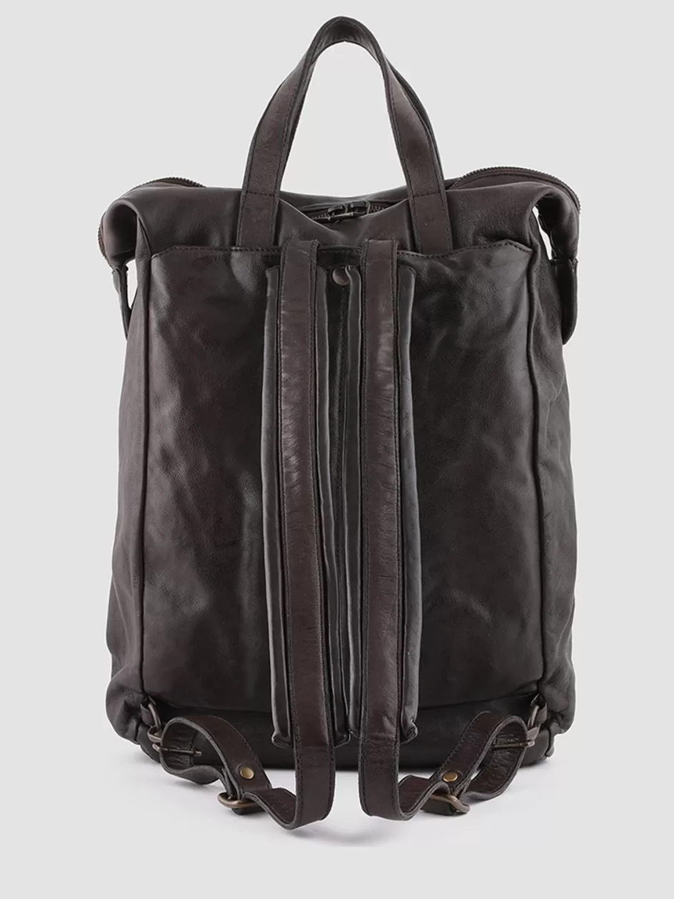 The perfect ally of contemporary smart-casual style our Helmet backpack stands out thanks to its practical and flawless artisan design. It is handcrafted from premium ebony-tone leather and features two top handles to take it as a bag two adjustable rear shoulder straps zippered main compartment two front pockets embossed logo lettering front tag and gold-tone metal hardware.