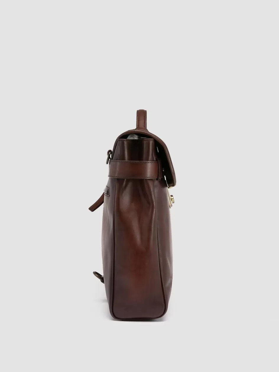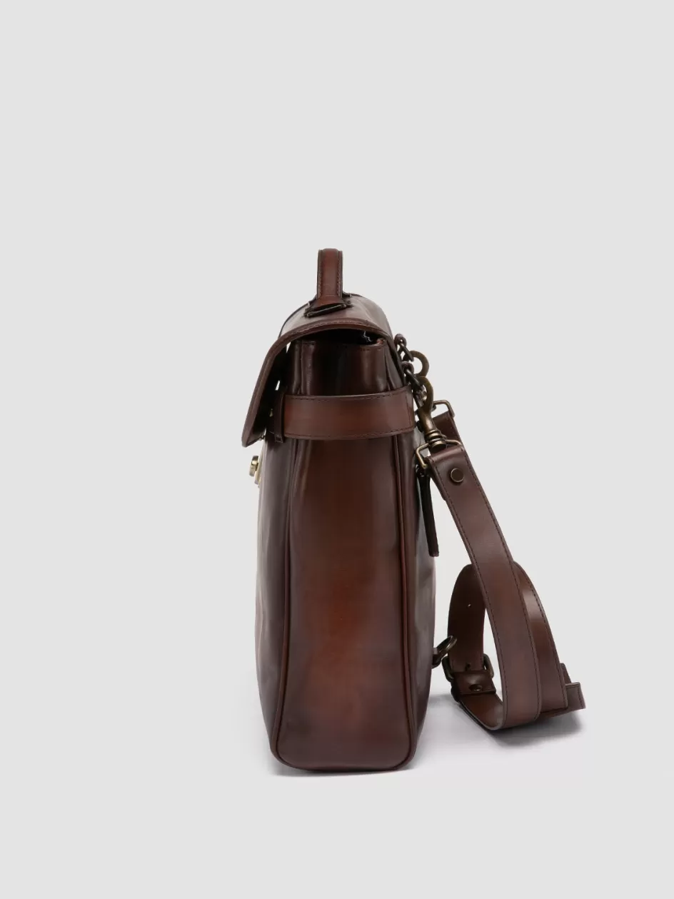 The Jerome 003 briefcase merges timeless flair with functional design. Handmade in Italy in brown leather, it features a top handle, a secure front clasp and a structured storage space, perfect for the discerning professional.
