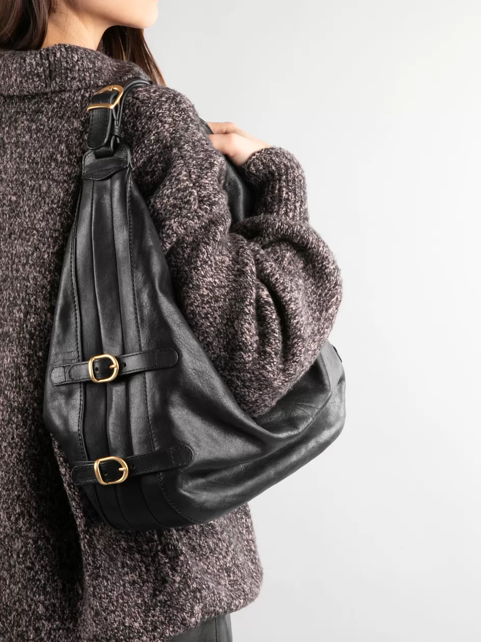 Revisit the allure of the ’90s with the Julie 008 black shoulder bag, blending retro aesthetic and contemporary functionality. Handcrafted in Italy from premium leather, this piece-dyed accessory features elegant metal buckles, a zip closure and an internal pocket for the most precious essentials.