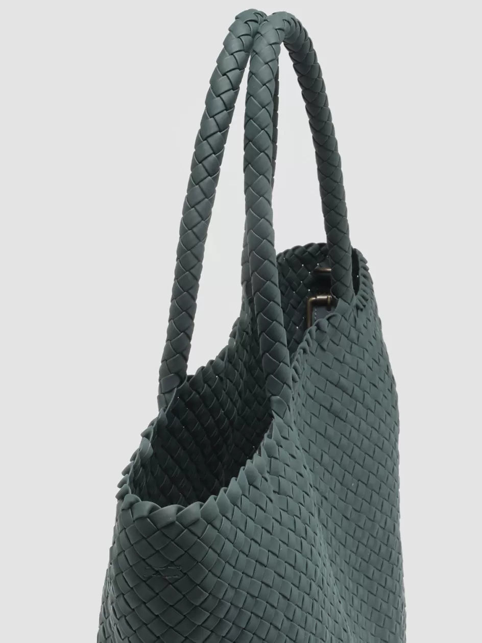 Our OC Class tote bag is a roomy silhouette in fine hand-woven leather. It features two top handles and an adjustable and detachable smooth leather strap to carry it comfortably at the shoulder and antiqued gold-tone metal hardware.