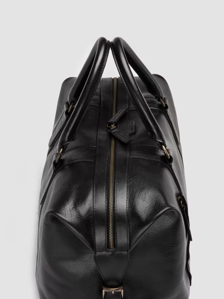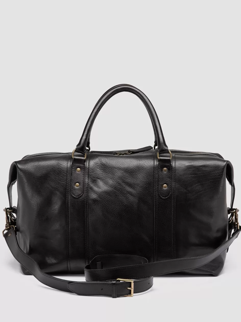 The Rare 045 travel bag features a sleek design in premium black leather. Handcrafted in Italy for durability, this travel essential features a spacious compartment and a shoulder strap, offering flair and functionality.