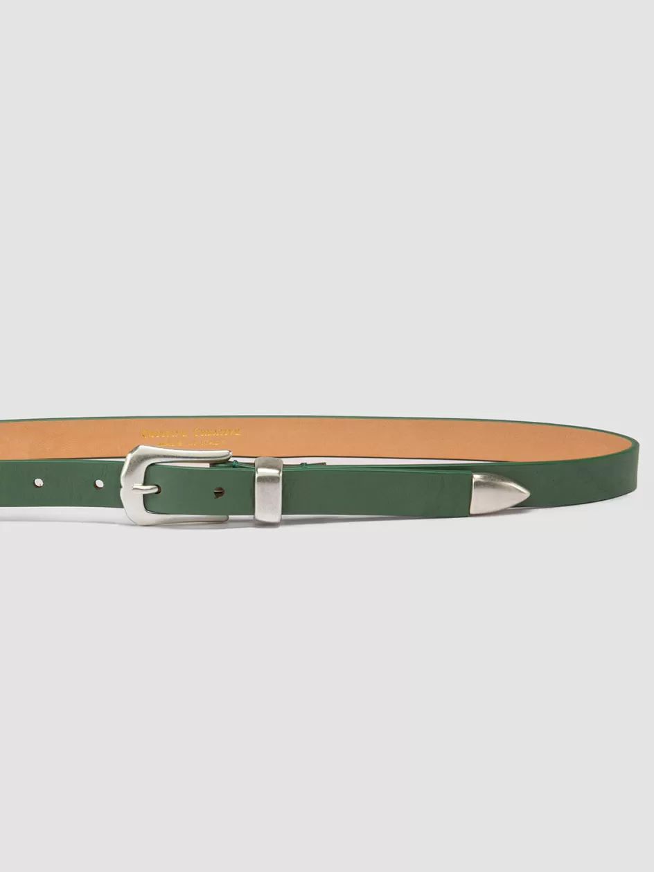 Our OC Strip slim belt in premium green leather stands out with its silver-tone metal bold buckle and pointed tab. Made with care by hand by our artisans, it features lettering logo imprinted on the inside, and is a great accessory to complete your looks with a stylish twist.