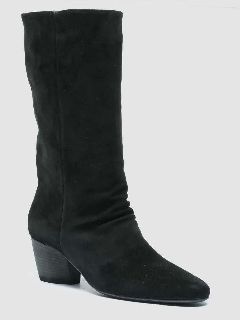 Embrace timeless sophistication with the Beth 010 Boots, handcrafted in Italy. Featuring a comfortable slanted heel and a side zipper for ease of wear, these boots in soft black suede offer a versatile aesthetic that gracefully complements any ensemble, from casual daywear to evening elegance.