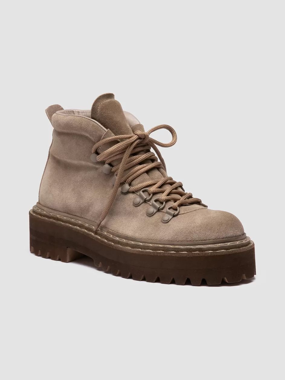 Handcrafted in Italy, the Blossom 005 ankle boots mix the sturdiness of the Ago construction with the softness of taupe suede. The lace-up front and lug EVA sole ensure a secure and comfortable fit.