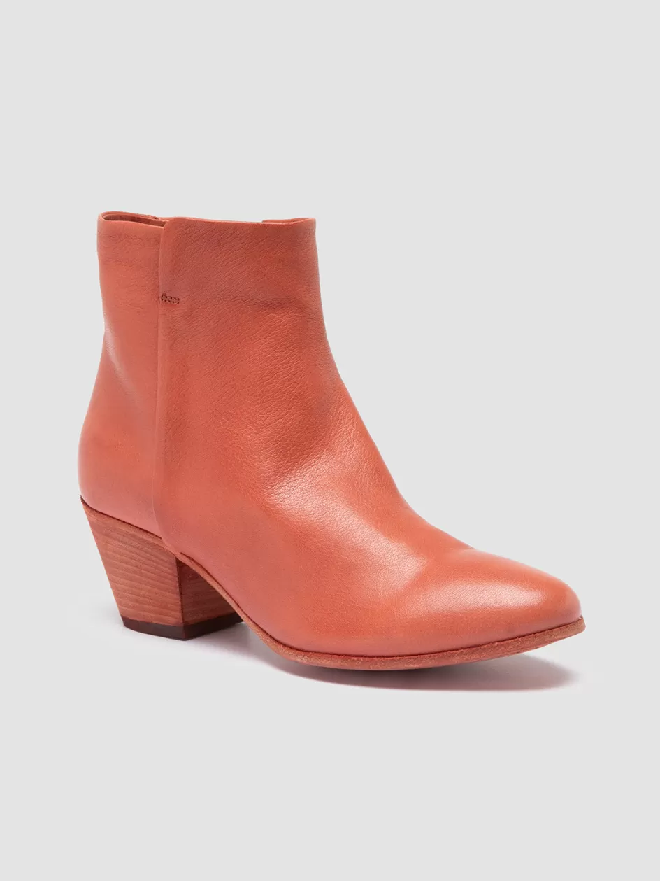 Our sophisticated Shirlee ankle boots are great for any occasion. Crafted with care by hand from supple orange leather, they feature a rounded toe design, wrap side panels, zip fastening, leather sole, and Cuban-style stacked midi heel.