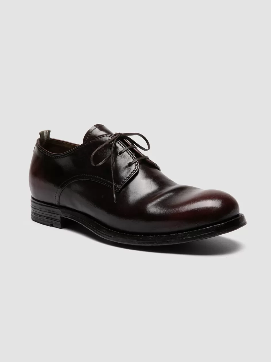 Handmade in Italy from premium leather, the Balance 019 derby shoes in burgundy feature a lace-up design with an airbrushed finish and a rubber-injected leather sole, blending durability with a refined aesthetic.