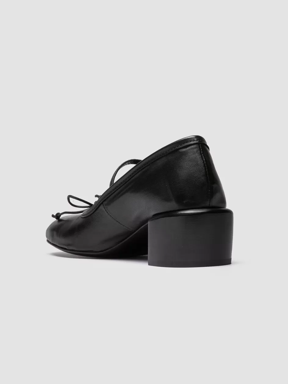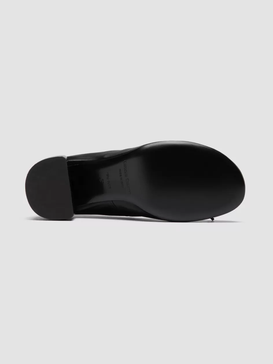 Handmade with the Italian ‘a sacchetto’ technique, the Flore 001 ballerina shoes redefine timeless elegance. These black leather flats are comfortable and flexible, and the inverted heel adds a subtle contemporary touch.