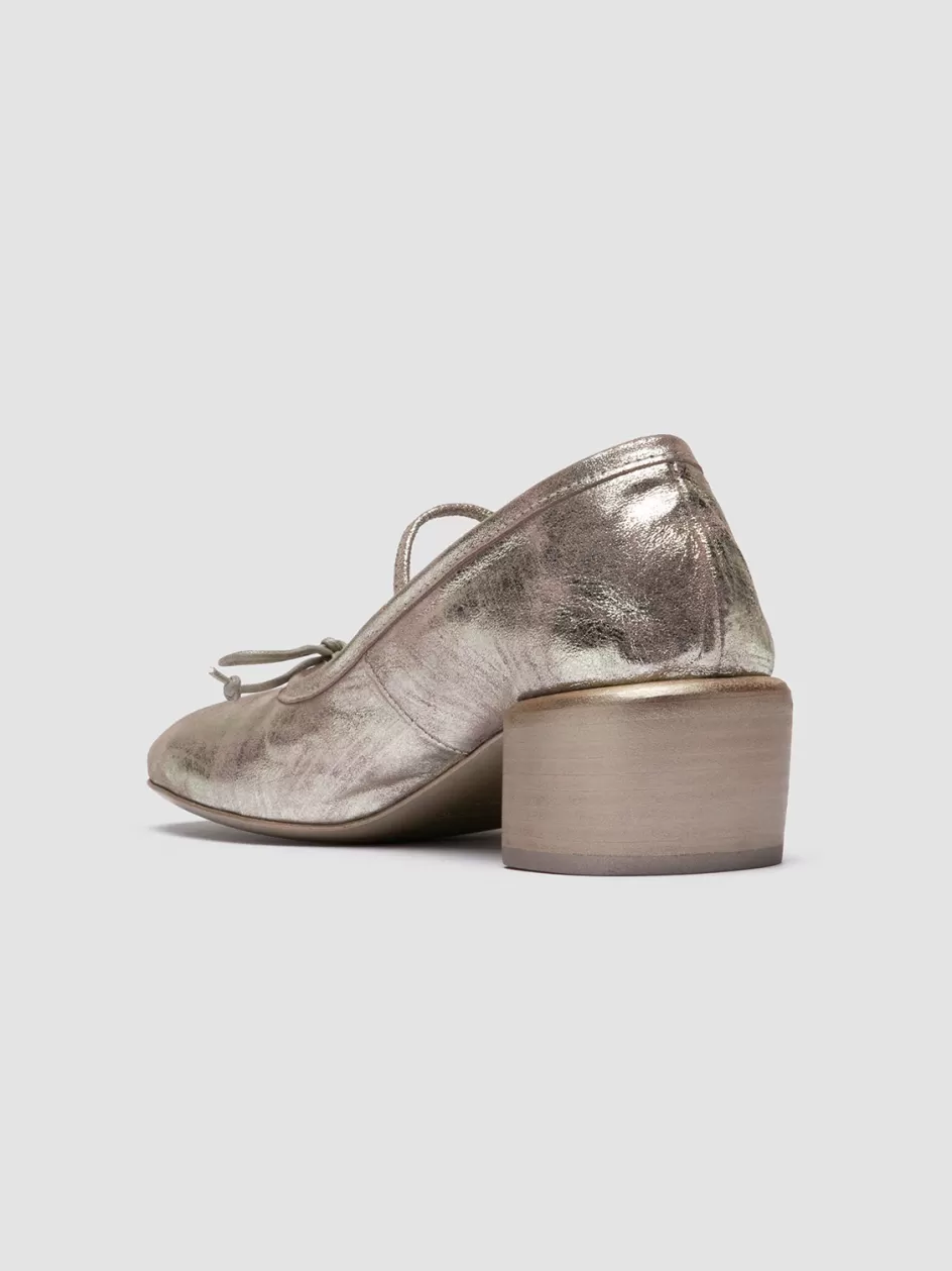 Handmade with the Italian ‘a sacchetto’ technique, the Flore 001 ballerina shoes redefine timeless elegance. These platinum leather flats are comfortable and flexible, and the inverted heel adds a subtle contemporary touch.