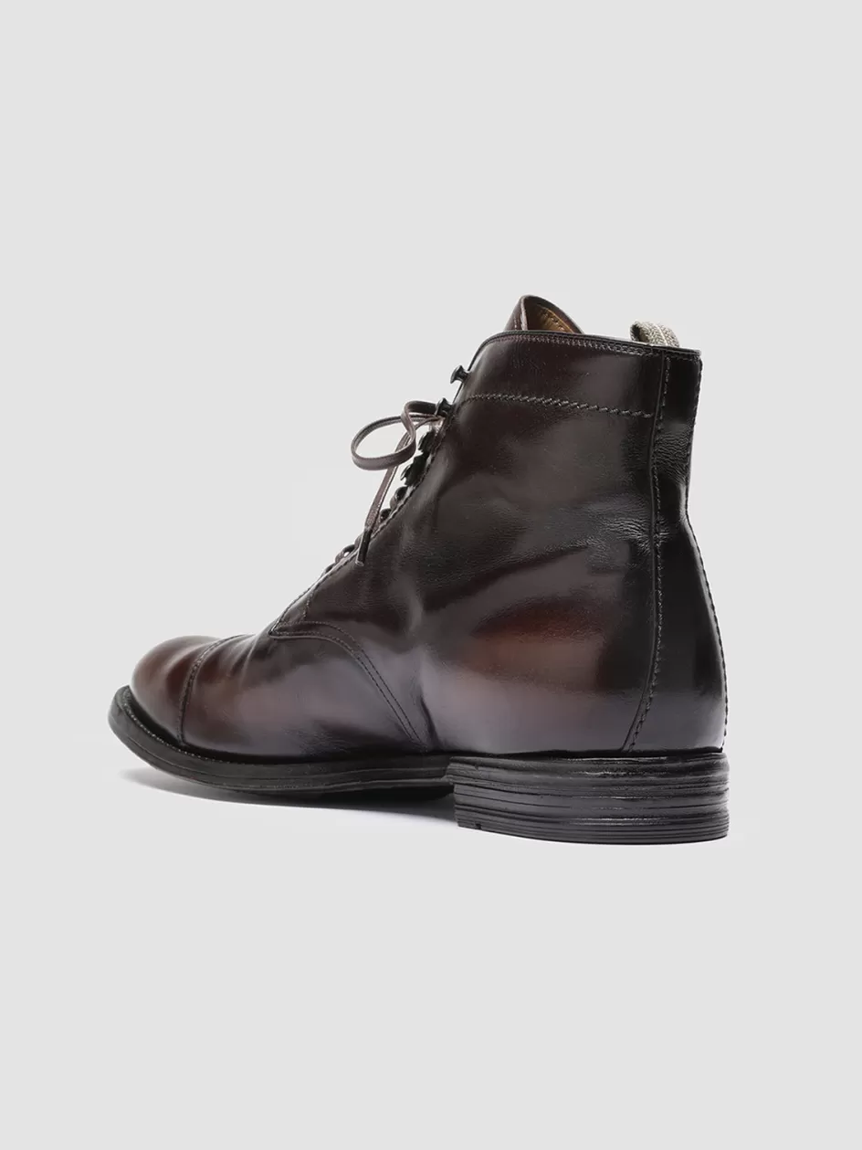 Our versatile Anatomia ankle boots feature a comfortable and decidedly versatile style. Expertly handcrafted from supple smooth leather they feature a finish in shades of coffee and dark brown almond toe thin waxed laces signature grosgrain heel loop-tab o and a leather sole with grip rubber inserts.