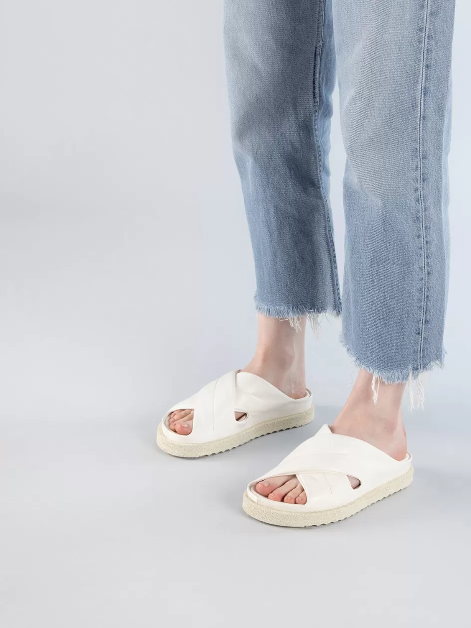 Step into the epitome of sleek simplicity with the Sands 103 slide sandals. Handcrafted in Italy, the sculptural lines in the highest quality white leather gracefully conforms to the foot’s contour, while the Rubrex sole provides comfort with every step, keeping the silhouette lightweight and on-trend.