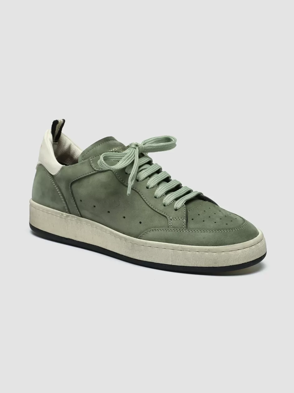 Taking design cues from low-top court styles, our Magic 102 green suede and leather sneakers are a timeless choice for everyday wear. Set on natural rubber soles for comfort, they’re finished with airflow-enhancing perforations and subtly detailed with our logo in gold lettering.