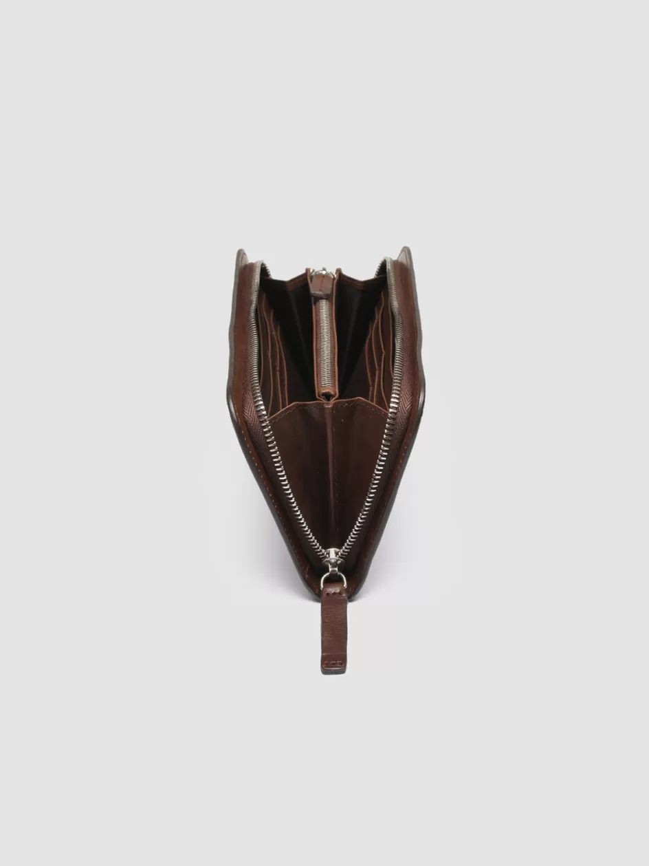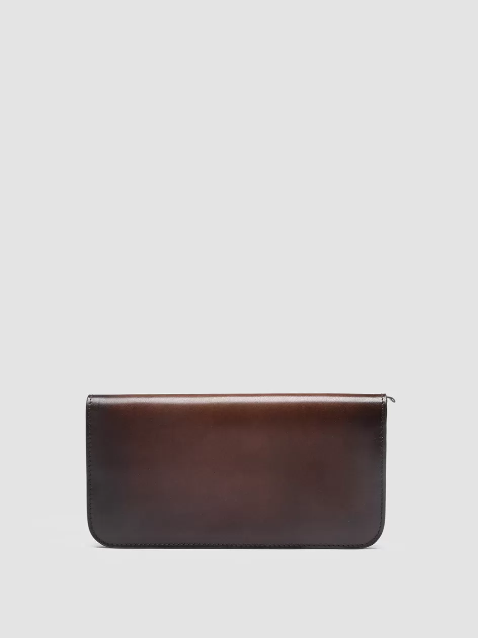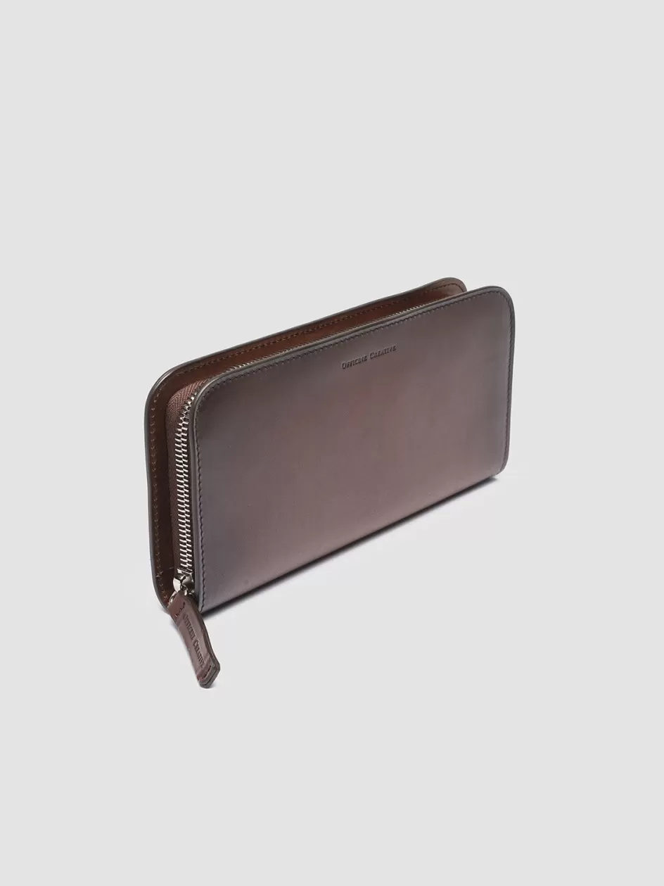 Our refined handcrafted Berge’ wallet stands out thanks to the dark brown airbrushed finish which makes each item unique and exclusive. It features a silver-tone metal zip around closure logo lettering embossed at one side two internal compartments divided by a zipped pocket and multiple card slots.