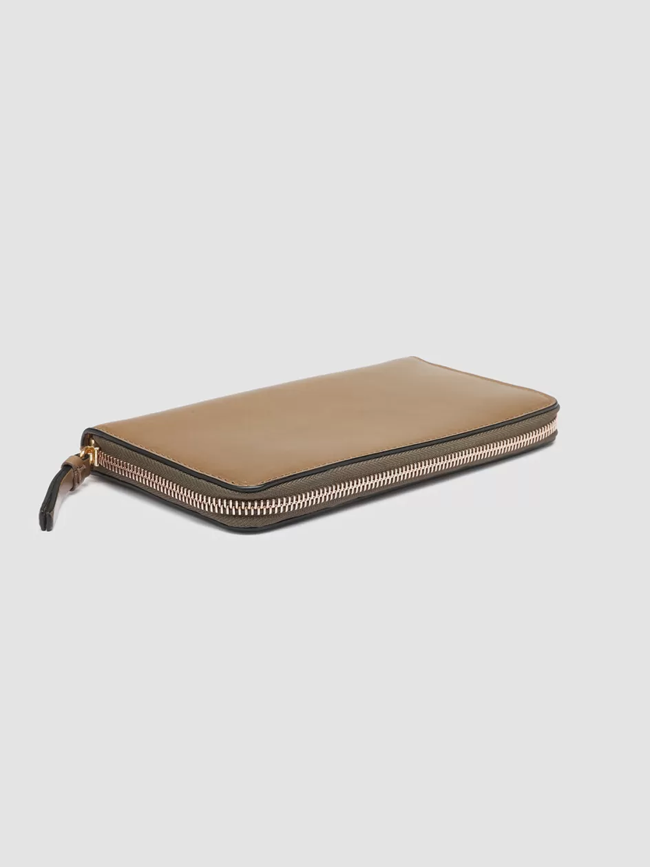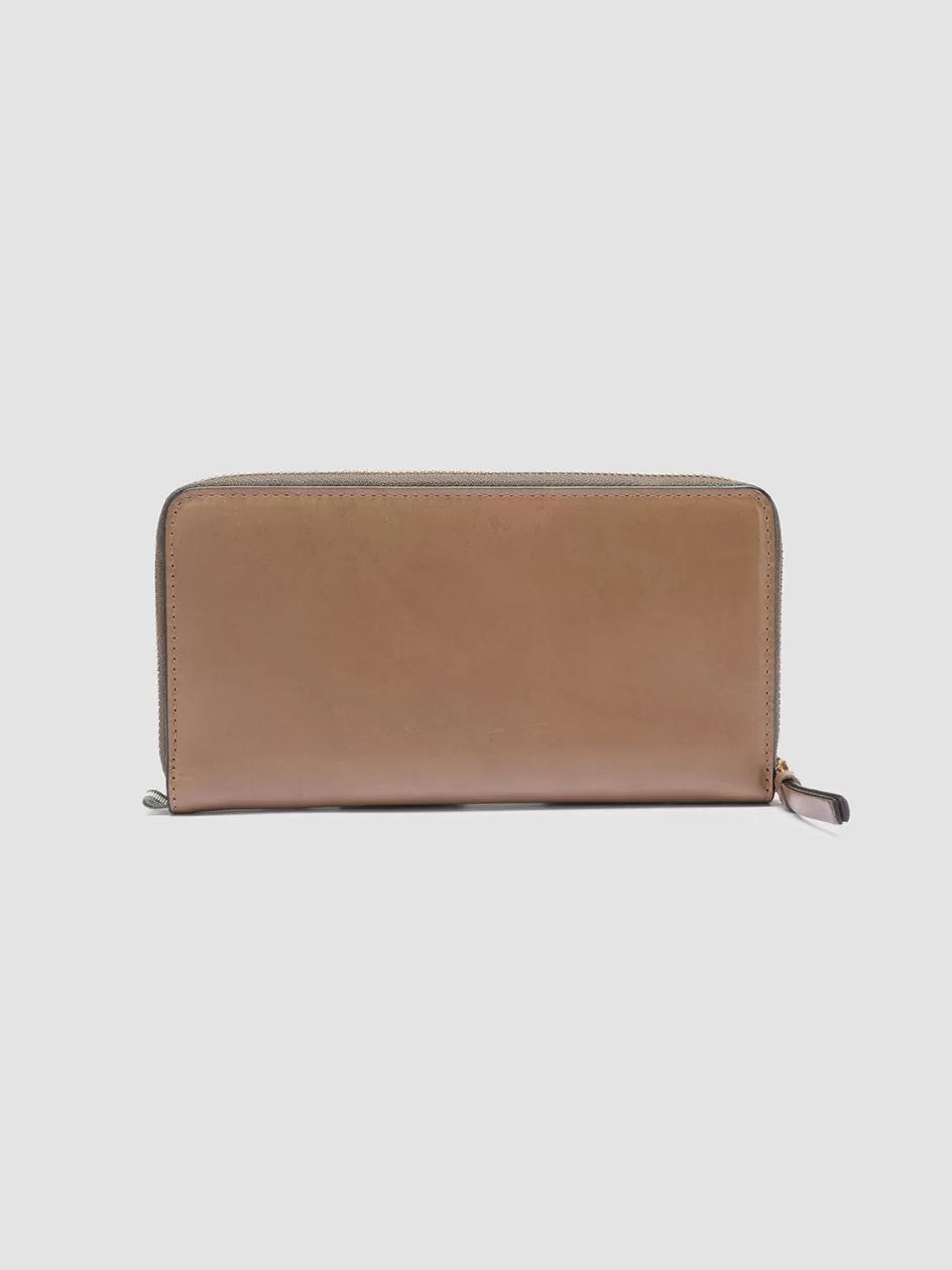 Our handcrafted Juliet wallet reveals a classic and practical design. Handcrafted from premium smooth tan leather it features our sleek gold-tone lettering logo printed at the front zip around fastening one interior zip pocket one open compartment and multiple card slots.