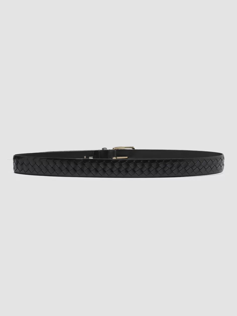Our refined OC Strip handcrafted belt in fine woven and airbrushed leather in shades of black is perfect to combine with your most elegant outfits. It features a classic square buckle in gold-tone metal logo lettering printed on the inside and our signature grosgrain loop tab.